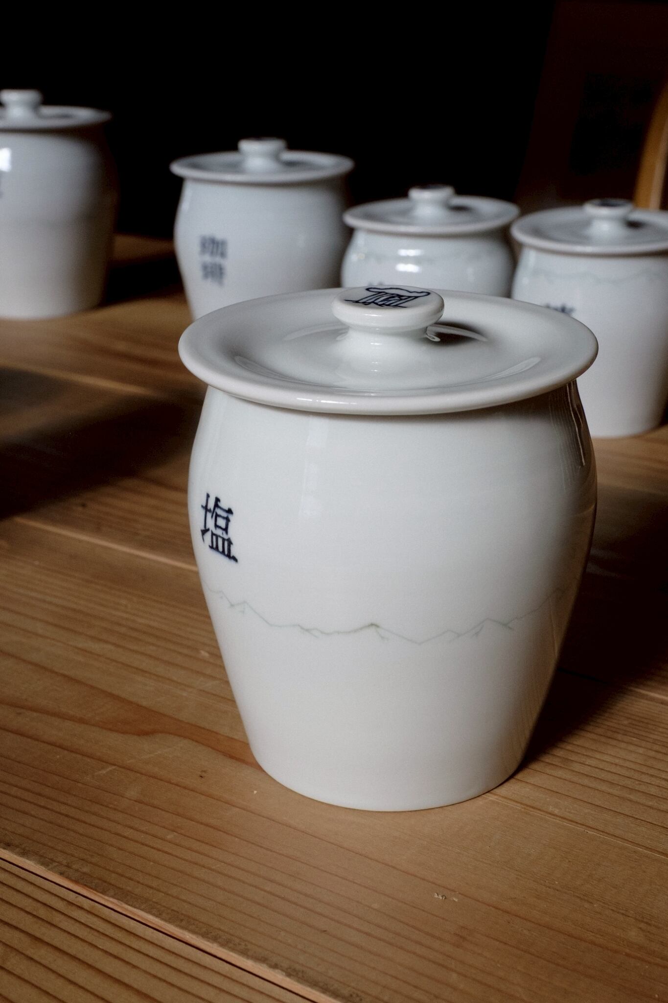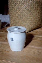 美山の陶磁器作家・芦田尚美さんのAMETSUCHIのヤマノハ調味料壺、S サイズ、文字入り「塩」
