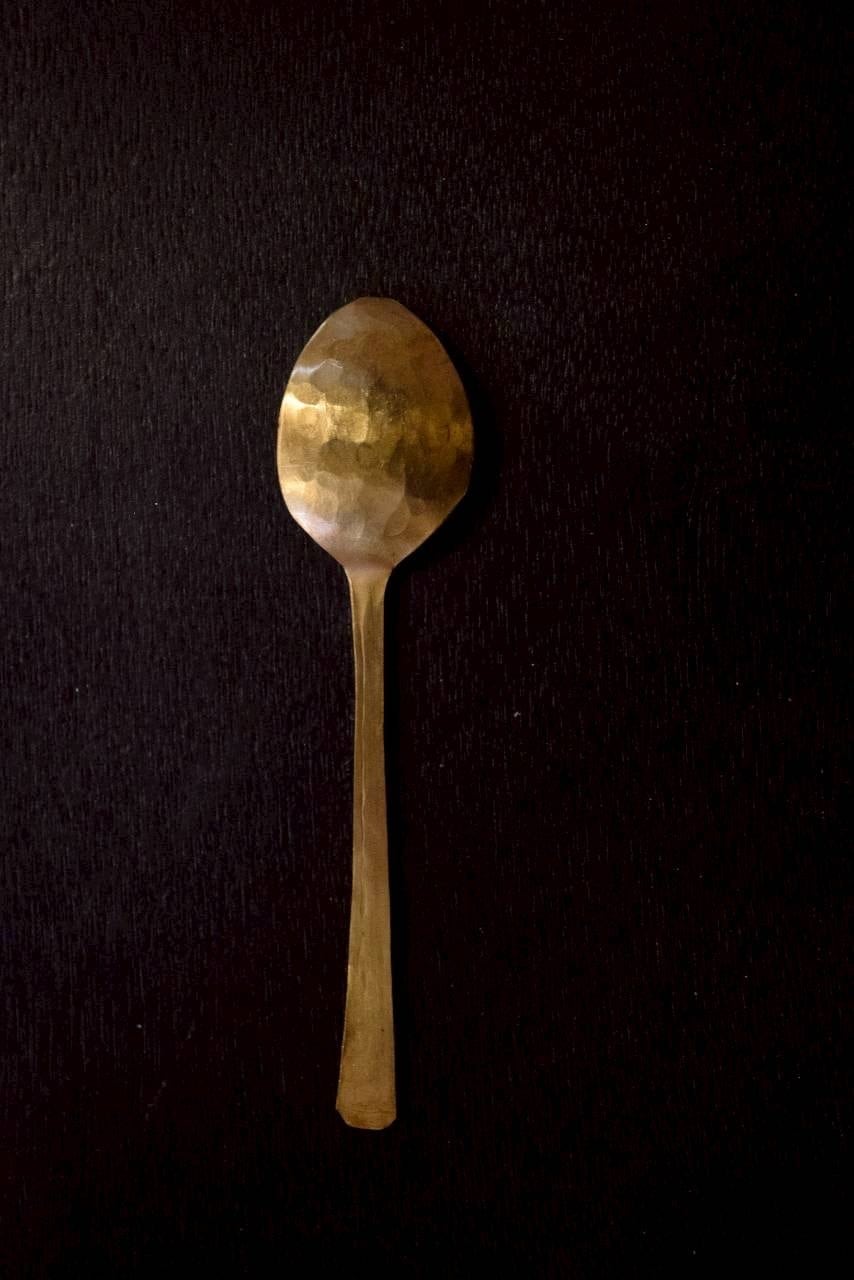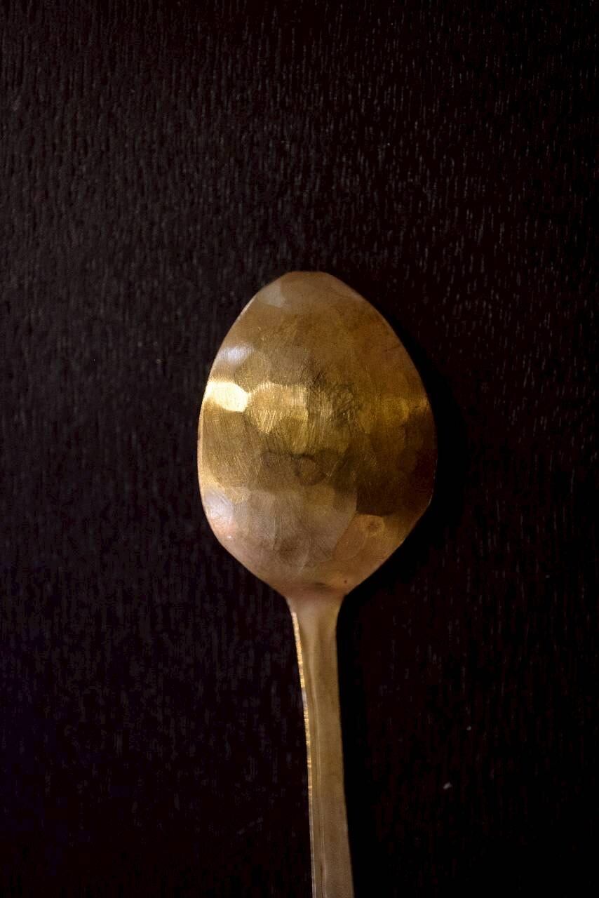 伝統的な鍛金技法でアルミ、真鍮で作品を製作を行う山田憲栄さんの真鍮のティースプーンンです