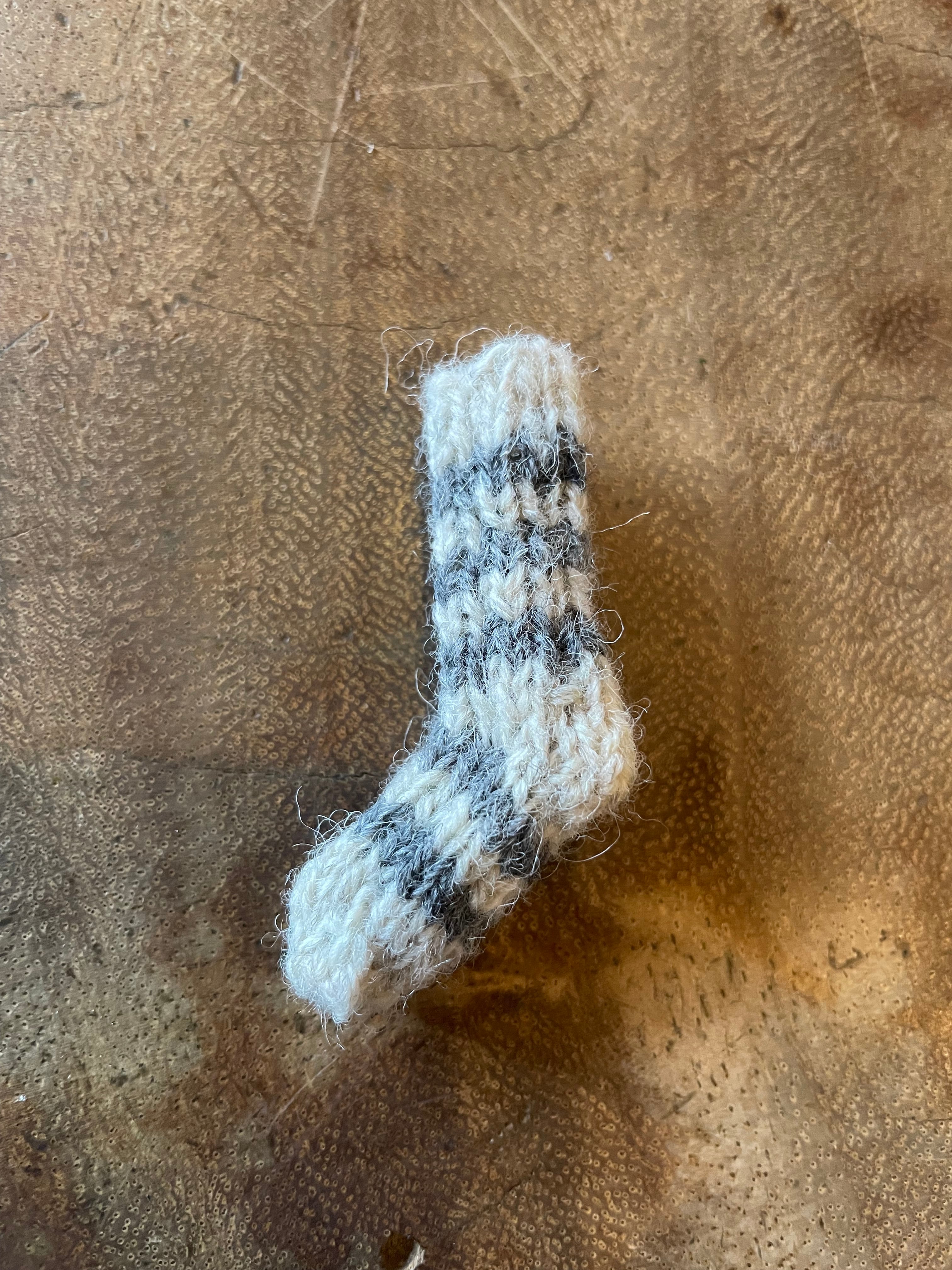 糸と手 ブローチ ボーダー靴下ナチュラル