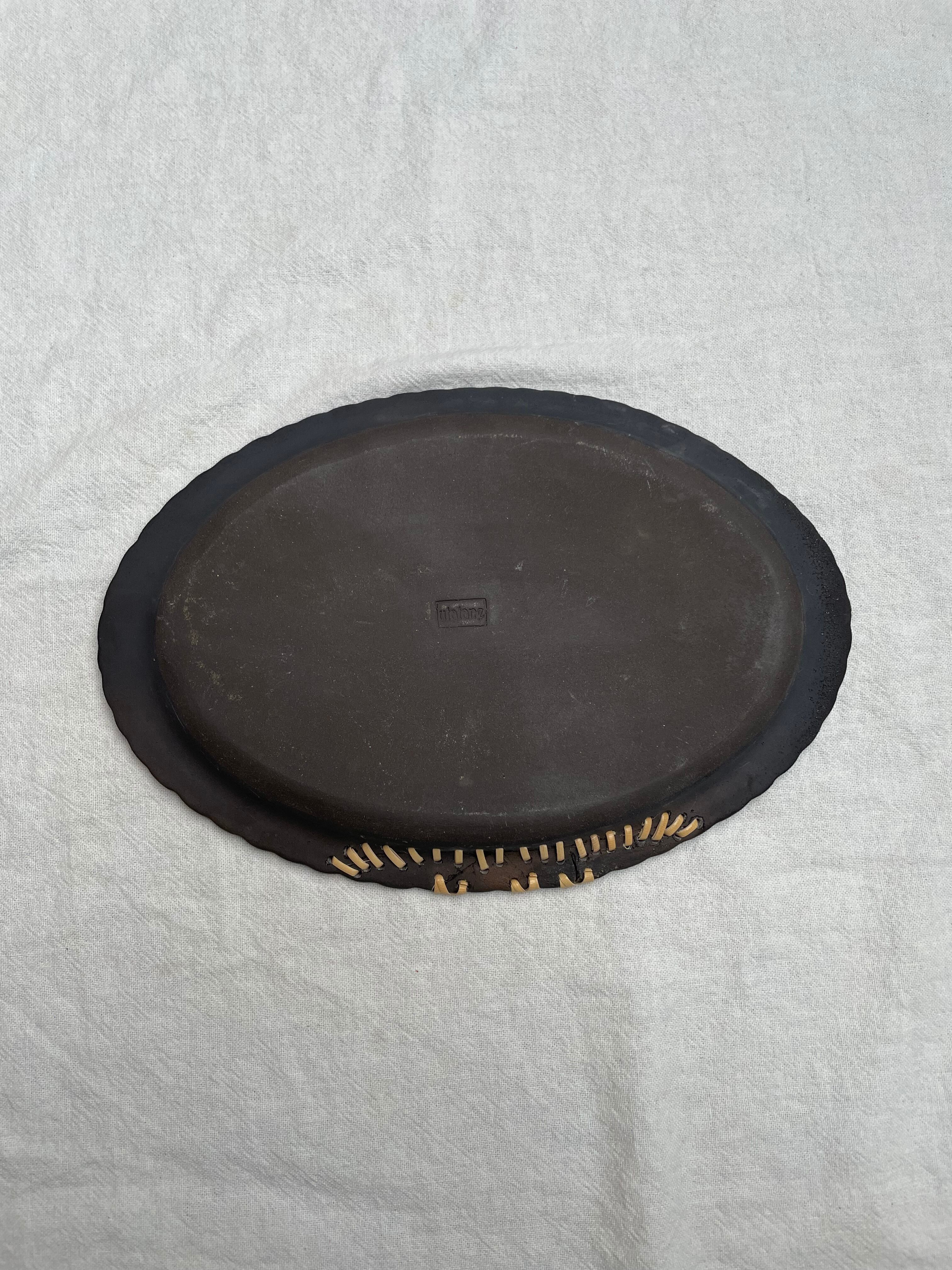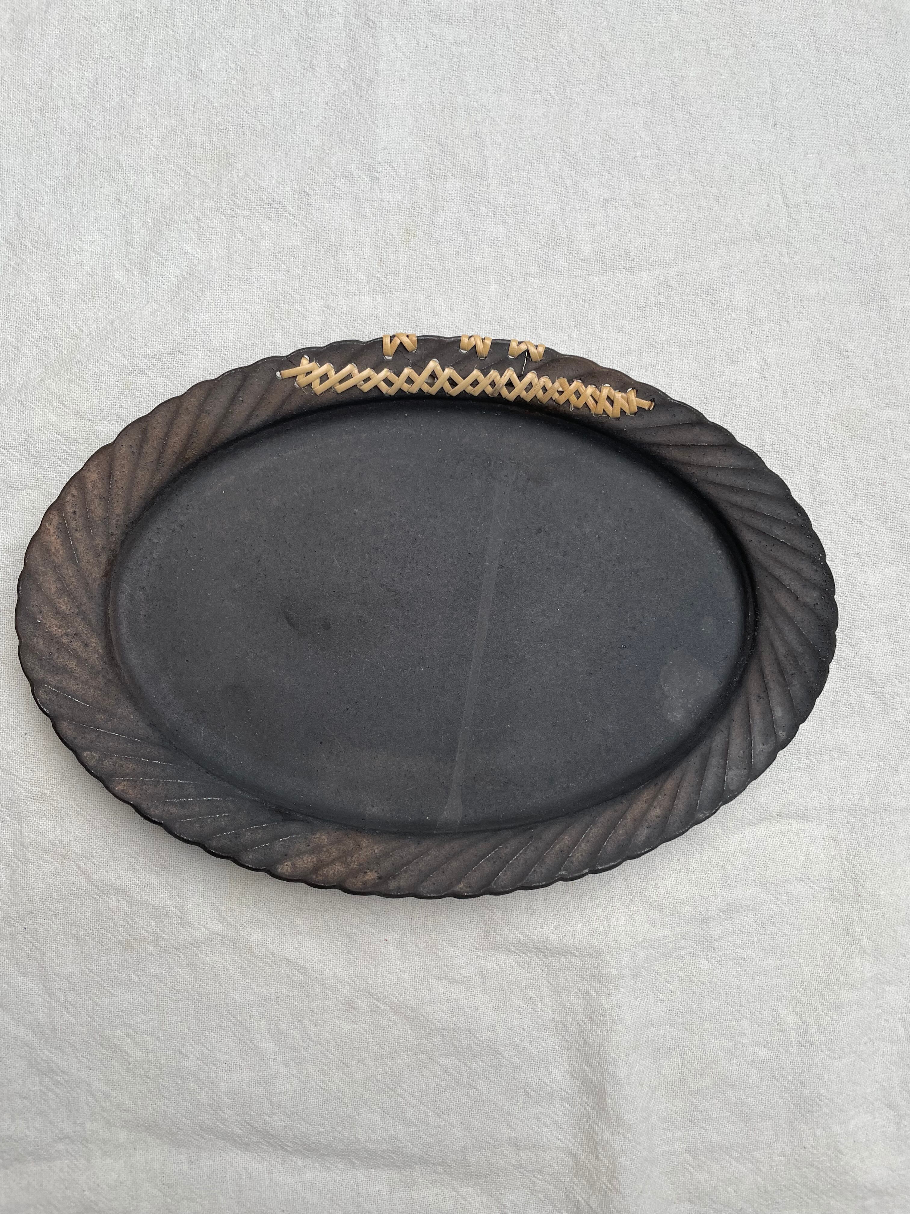 うつわ うたたね × hashime コラボ 籐継ぎ皿 オーバル 鈍色