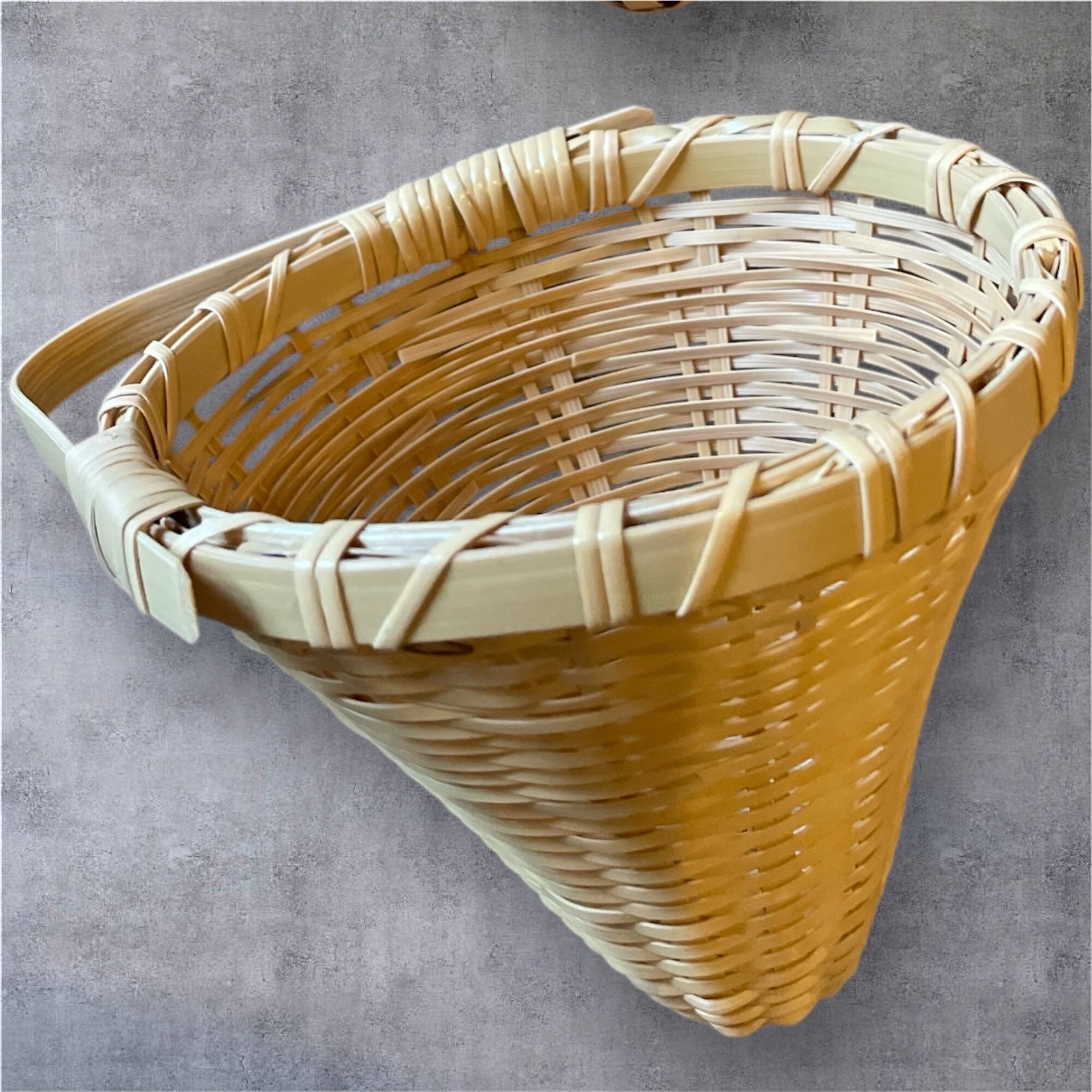 底部には菊底編み、側面にはござ目編みを施し、軽やかさと安定感を兼ね備えたかたちに仕上げられています。