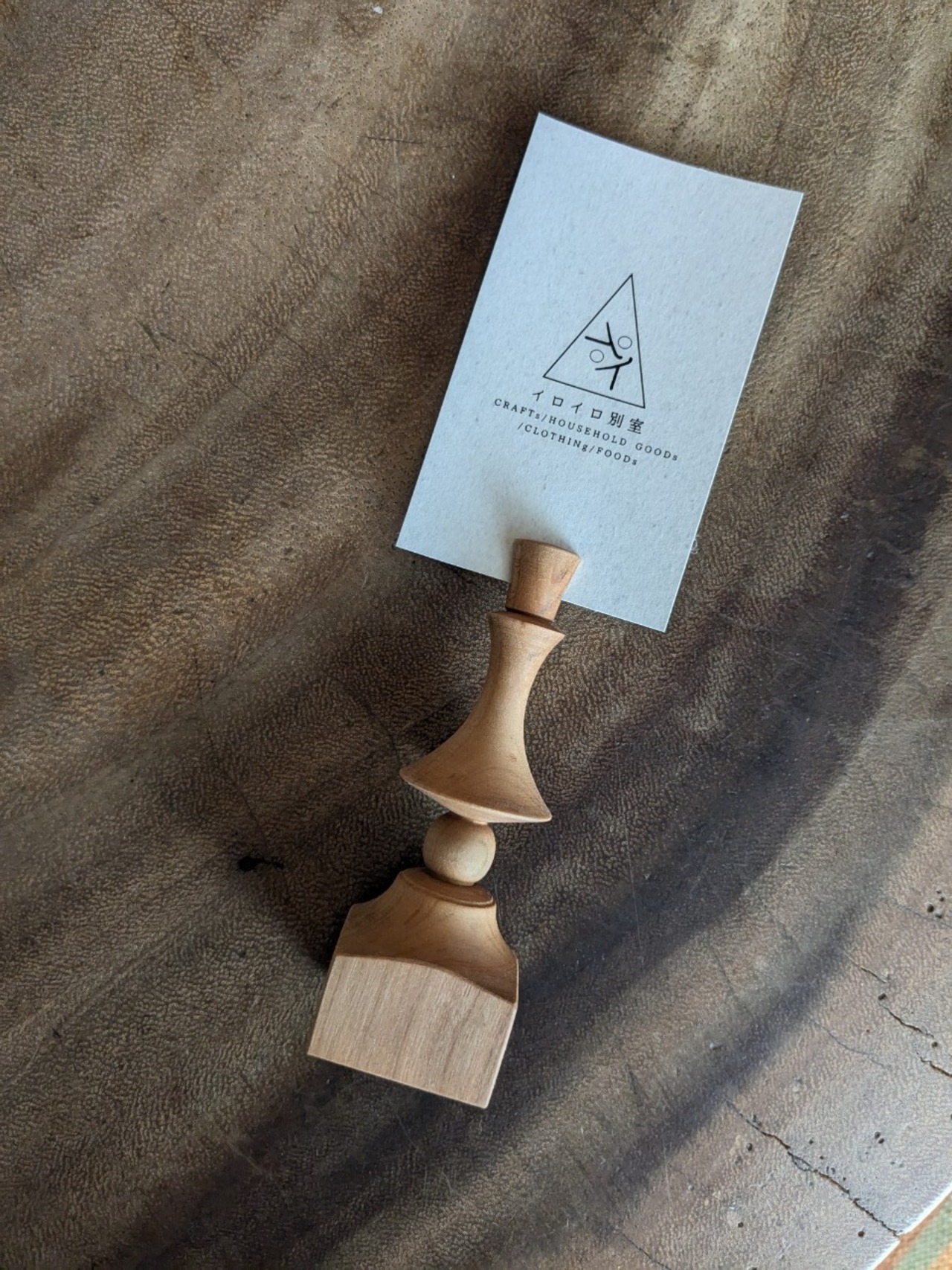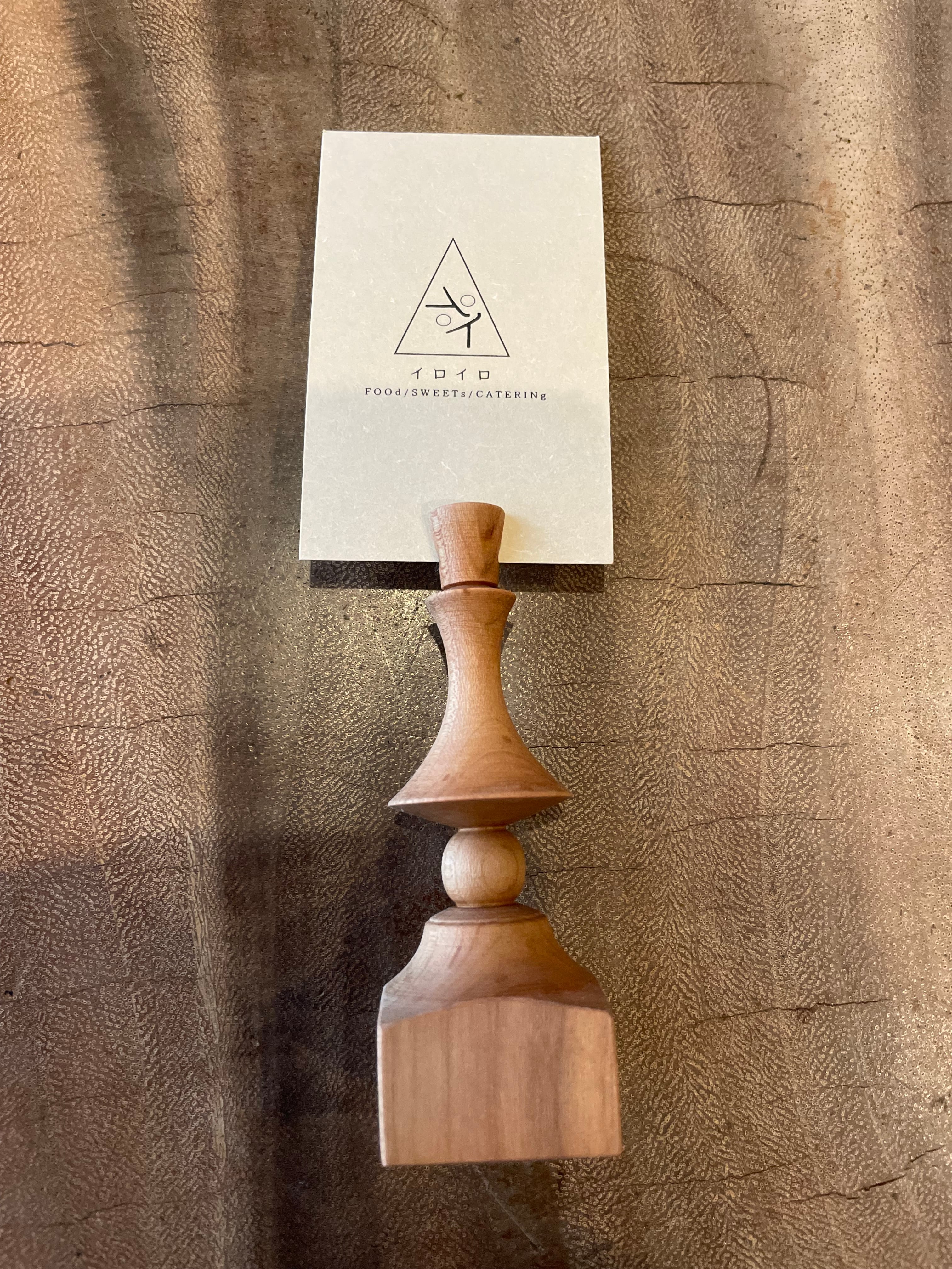 飛騨高山のosio craft さんの木工旋盤で一つ一つ削り出したカードスタンド